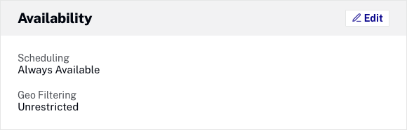 Cliquez sur le bouton Edit ou double-cliquez sur la section pour modifier les propriétés Availability. La disponibilité des vidéos peut être configurée d'après :