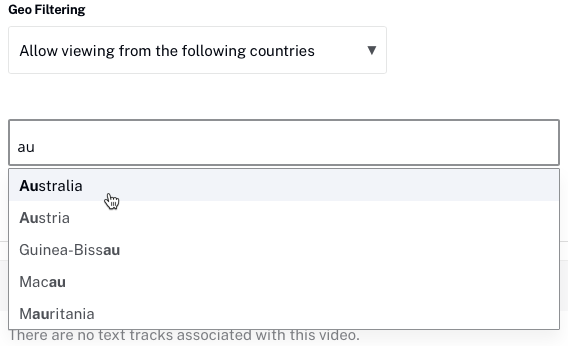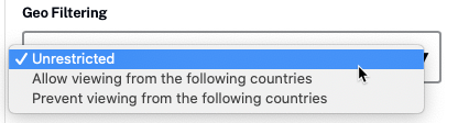 Le géofiltrage peut être utilisé pour contrôler quels pays ont le droit de lire la vidéo ou pas.