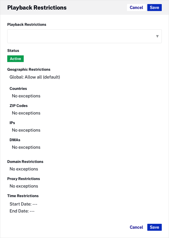 La section Restrictions de lecture affiche toutes les restrictions de lecture. Pour plus d'informations sur la configuration des restrictions de lecture, consultez Gestion des droits de lecture.