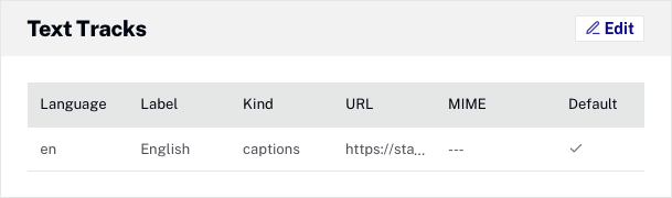 La section Pistes de texte permet d'ajouter des pistes de texte à la vidéo. Pour plus d'informations sur la configuration des pistes de texte, voir Ajout de légendes aux vidéos à l'aide du module multimédia.