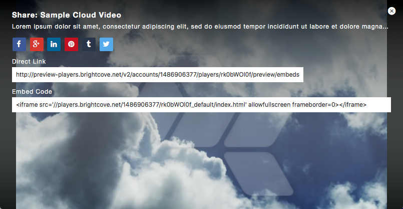- Social : affiche la boîte de dialogue de partage social à la fin de la vidéo