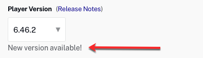 Le paramètre Player Version permet de définir la version du lecteur. Si le mode de mise à jour est Manuel et qu'une nouvelle version du lecteur est disponible, un message s'affiche.