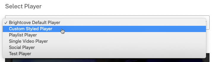- Sélectionnez un lecteur à utiliser. Lors de la publication de listes de lecture, certaines propriétés de lecteur liées aux listes de lecture peuvent être définies pour contrôler apparence et comportement de la playlist. Voir le Définition des propriétés de la playlist section ci-dessous pour plus de détails.