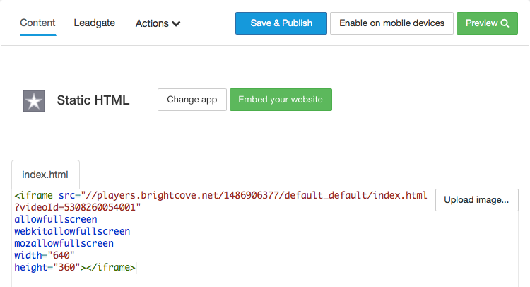- Collez le code d'intégration dans l'éditeur HTML statique.