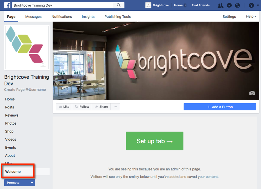 - Une fois l'application installée, vous devriez voir un onglet Welcome (Bienvenue) sur votre page de fan. Clique le Bienvenue languette.