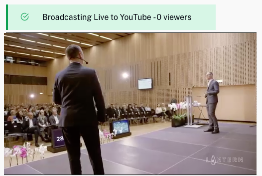 - Pour diffuser le flux en direct sur YouTube, cliquez sur le Diffuser aux téléspectateurs lien puis cliquez Flux de diffusion. L'aperçu sera mis à jour pour afficher le nombre de spectateurs.