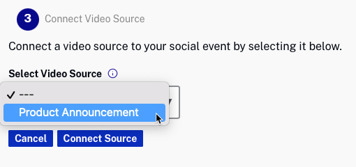 - Sélectionnez l'événement en direct dans le Sélectionnez la source vidéo la liste déroulante.