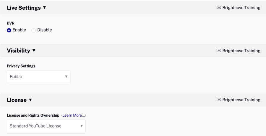 Pour plus d'informations sur la création d'événements en direct à l'aide du module Live, voir Création et gestion d'événements en direct à l'aide du module Live.