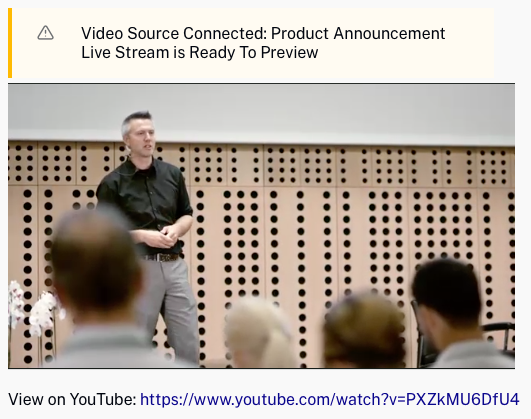 - Cliquez sur le lien Aperçu du flux en direct en haut de la page, puis cliquez sur Aperçu. Cliquez sur le bouton Lecture pour afficher un aperçu du flux en direct YouTube. C'est le flux que YouTube diffusera afin de confirmer qu'il est comme prévu.
