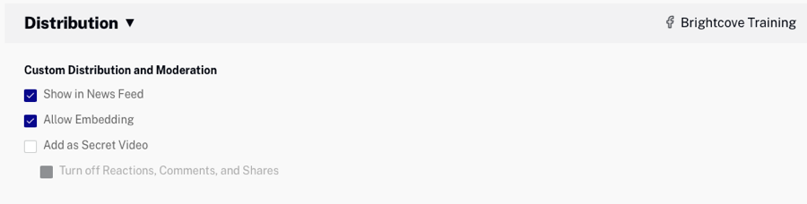 - Titre : titre de la vidéo (par défaut, le titre de Video Cloud). Facebook tronquera après 65 caractères