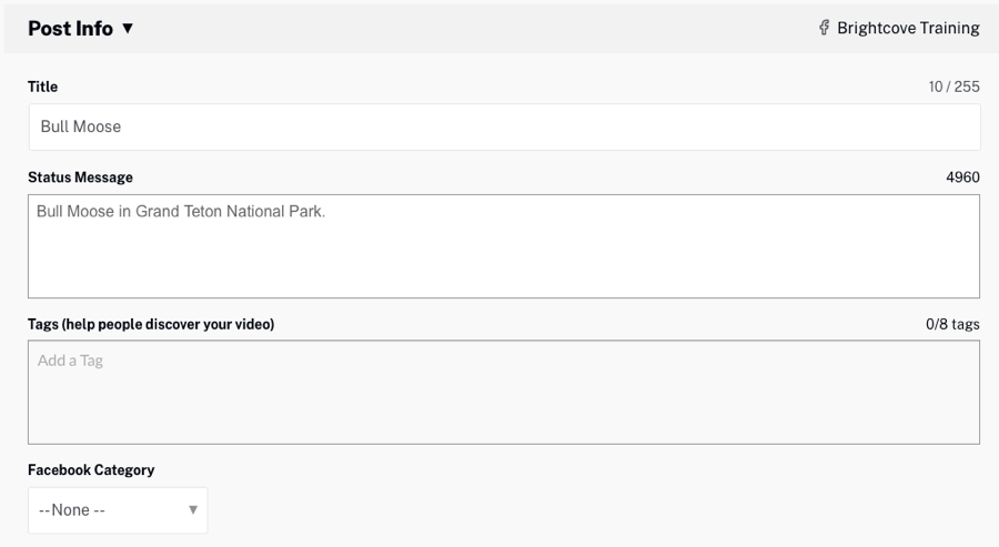 Cliquez sur le lien Post Info. Vous pouvez définir les propriétés vidéo Facebook suivantes :