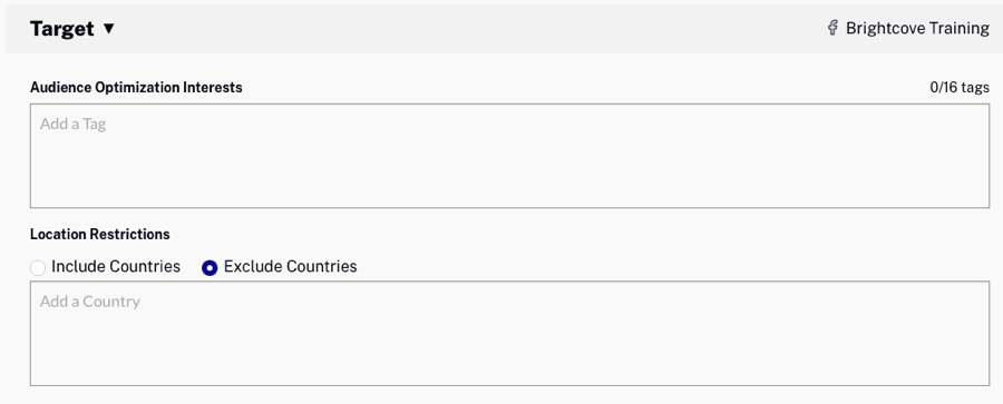 - Sélection du pays : sélectionnez dans le monde entier, Inclure les pays ou Exclure les pays Si l'option Inclure ou Exclure est sélectionnée, ajoutez les restrictions d'emplacement.