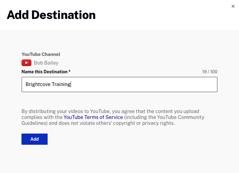 Créez une destination YouTube lorsque vous souhaitez publier des vidéos sur une chaîne YouTube. Avant de créer une destination YouTube, vous pouvez vérifier votre compte YouTube. Une fois votre compte vérifié, vous pourrez télécharger des vidéos pendant plus de 15 minutes.