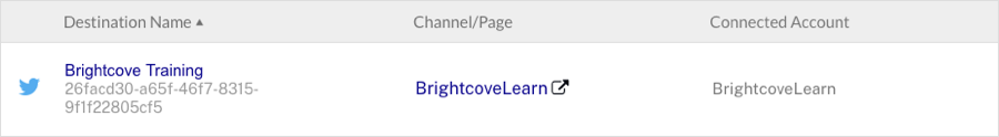 ) s'affiche à côté du nom de destination. Cela peut se produire si les autorisations Brightcove sont supprimées du compte de médias sociaux ou lorsque les informations d'identification utilisées lors de la création de la destination ne sont plus valides. Pour résoudre le problème :