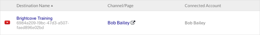 Cliquez sur le nom de la destination pour modifier la destination. Cliquez sur le lien dans la colonne Canal/Page pour ouvrir la chaîne YouTube dans un autre onglet du navigateur.