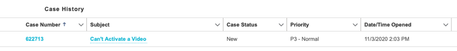 - Cliquez sur un numéro de dossier pour afficher les détails du dossier, y compris les commentaires du support Brightcove.