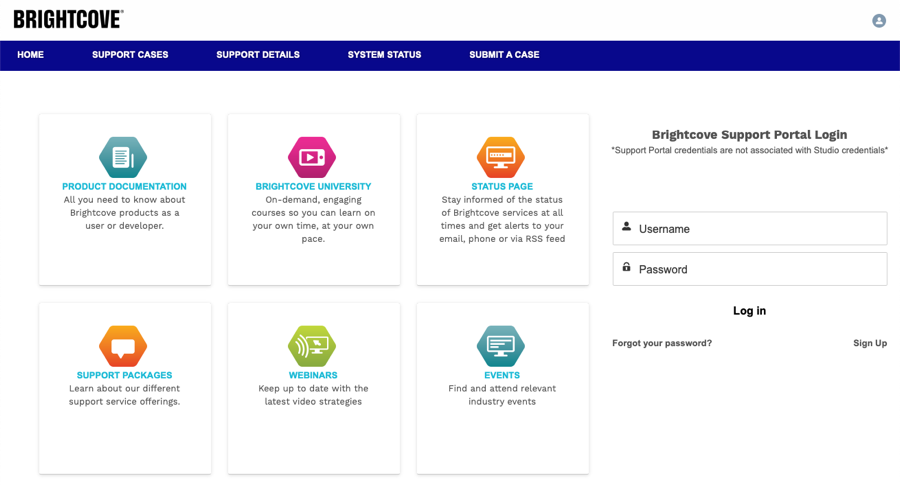 - Accédez à https://supportportal.brightcove.com